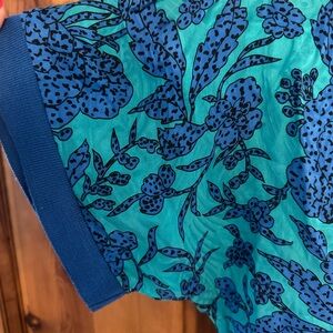 Beautiful vintage silk dress featuring a vibrant blue and teal floral print. This piece has a classic, timeless silhouette with short sleeves, a softly gathered skirt, and a wide waistband that creates a flattering shape. Made from lightweight silk that drapes beautifully and feels luxurious.