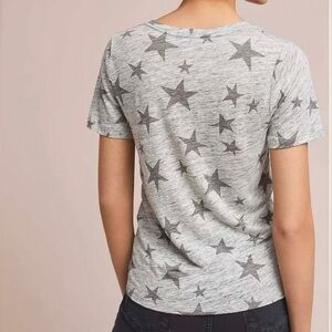 Add some sparkle to your off duty style with this top from Rails. Constructed from a heathered gray linen blend fabric this tee features short sleeves, a v neckline, and is finished with a decorative blanket of stars scattered all over. Perfect for warm days.