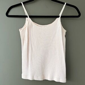 brandy melville, pink tank top, ribbed tank, spaghetti strap top, blush pink, lace trim, coquette, y2k, minimalist, fitted top, layering piece, soft girl, xs top, summer staple