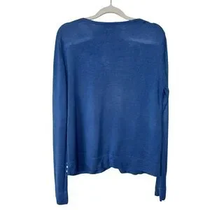 Silx Long Sleeve Silk Button Front Cardigan Light Blue Button Accent Hem Size L