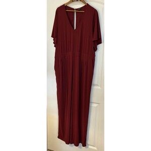 Torrid Womens Jumpsuit Size 4 Burgundy Wide Leg Challis V Neck Flowy Elegant 4X