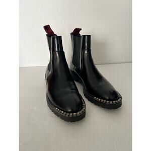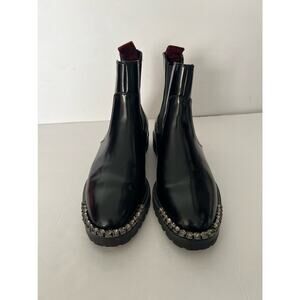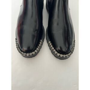 Schutz Women's Daisha Embellished Leather Chelsea Boots Black Lug Sole Size 7