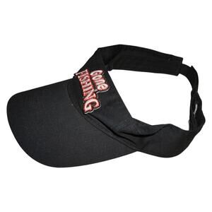 Classic Gone Fishing black adjustable visor with bold red and white embroidered logo on the front. Designed for sun protection and comfort, this lightweight cotton visor is ideal for fishing, outdoor adventures, or casual everyday wear. One size fits most with a Velcro strap closure.