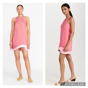 Staud M Allori Pink Linen Shift Dress Wave Hem. Designed with a relaxed fit and mini length. Linen fabric has a noticeable slubbed texture and offers no stretch. Excellent condition! Has pockets.