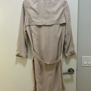 Chic trench coat with a sleek design. Features a tie belt and classic collar. Never worn, incredible quality