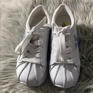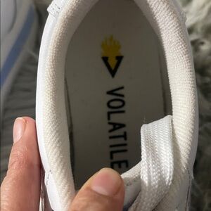 Elevate your look with Volatile's stylish platform sneakers. White with light blue accents. Perfect for a modern touch.