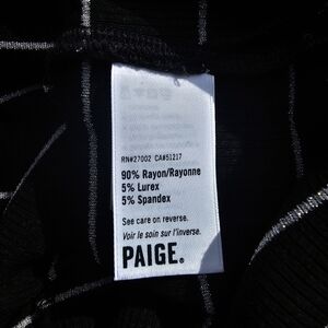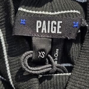 Elevate your wardrobe with this stunning NWT Paige Danisha Midi Dress! This chic and comfortable dress features a black ribbed knit with shimmering silver lurex stripes, adding a touch of sparkle to your look. The sleeveless, mock-turtleneck design and midi length create a sophisticated silhouette, perfect for a variety of occasions. Dress it up with heels and a jacket for a night out, or wear it with sandals for a stylish daytime look. This versatile piece is a must-have for any fashion-forward closet.