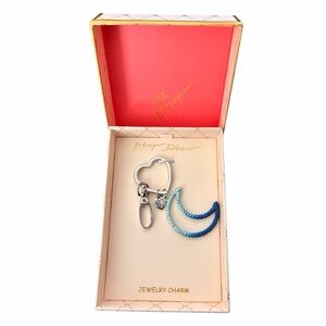 New in box Betsy Johnson blue crystal crescent moon charm keychain