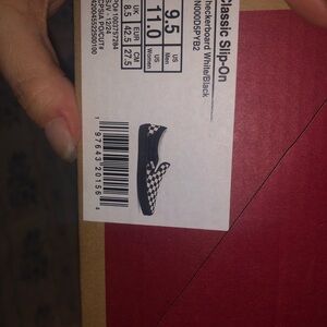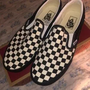 Stylish slip-on sneakers with iconic checkerboard design. Comfortable and easy to wear. Men’s size 9.5 women’s 11. New in box and never worn.