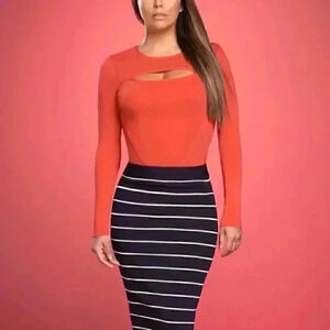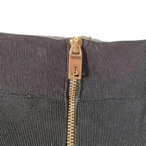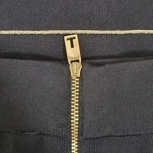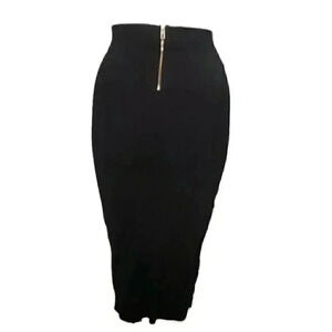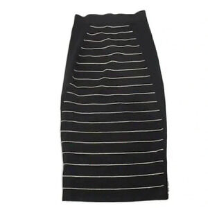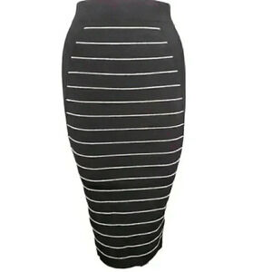 Steal the show in this Ted Baker High Waisted Curve Contouring Skirt Ted Pencil Skirt. Featuring glittering metallic stripes, stretch, micro-ribbed fabric, fitted waistband, and a eye catching gold back zipper closure. The slimming figure-flattering high waisted design makes tucking in silky tops, chic sweaters, and elegant tanks easy.