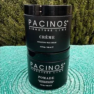 This is a set of two hair grooming products from the Pacinos Signature Line: a Pomade & a Crème-brand new-never used-original packing.
