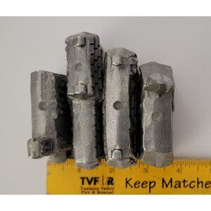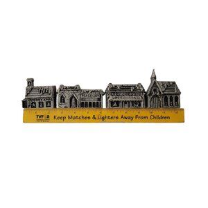 Each building includes a top candle socket designed for slender taper or traditional Christmas tree candles. Solid cast metal construction with classic silvertone patina and crisp architectural detailing throughout. These pieces are designed to be displayed facing either direction, allowing for flexible seasonal arrangements.
