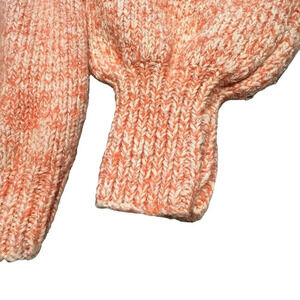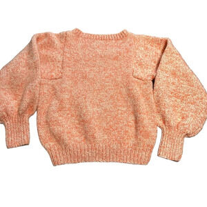 Women's XS handmade orange and cream crew knit sweater with ballon sleeves