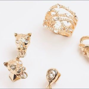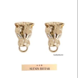 ALEXIS BITTAR • Gold Panther Head Crystal Eyed Post Stud Ring Earrings