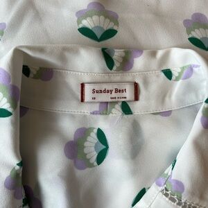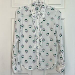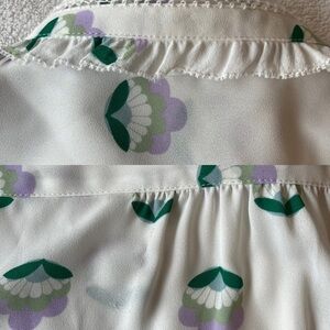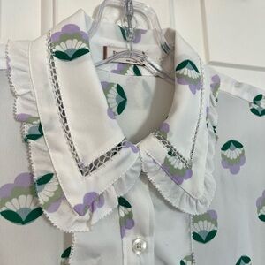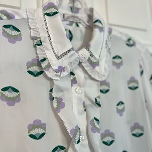 Ruffle Trim Sunday Best Aritzia Floral Shell Print Long Sleeve Button Front Blouse XS
