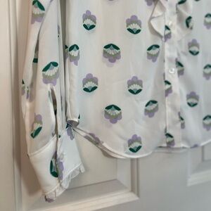 Floral Aritzia Sunday Best Long Sleeve Button Front Ruffle Trim Blouse XS