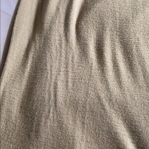 Used Venus brand fitted asymmetrical pencil skirt with elastic waist band. Very flattering on, some slight pilling, stretch material, style has jagged like edges, has very few tiny spotting on side of skirt very hard to see