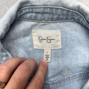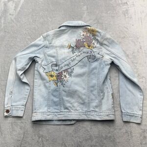 Jessica Simpson Womens Denim Jacket Floral Butterfly Embroidered Size L