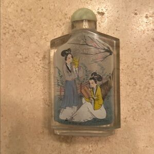 Set of five eclectic, elegant glass perfume bottles. Features intricate designs and unique shapes. Perfect for display or collection. Excellent condition. Buy them all or individually. Sea life is $30. Lalique is $50. Japanese and painted white are each $20. Small is $14.