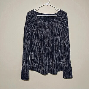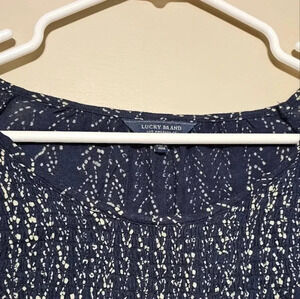 Lucky Brand Women's Size Large Navy Printed Smocked Cotton Modal Blouse Blue