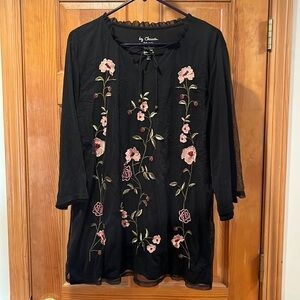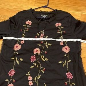 Chicos black mesh layered pink floral Embroidery 3/4 sleeve top size 3 (X/16).