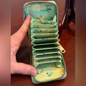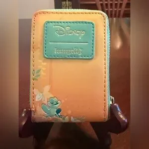 Charming Disney Loungefly wallet in orange and teal. Features a playful design with a cute character.