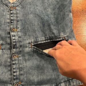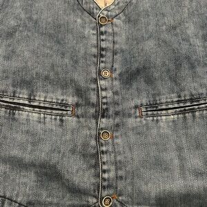 Great condition- no holes or stains. 32 Bar Blues Men’s Denim Vest Size Small 100% Cotton. Adjustable in the back.