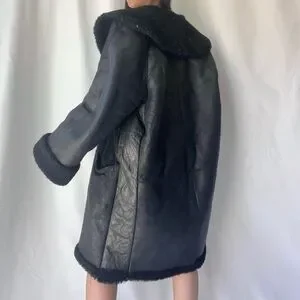 Vintage Black 100% Genuine Shearling Heavy Coat