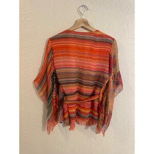 Bohemian Colorful Floral & Striped Flowy Kimono Style Semi Sheer Wrap Top