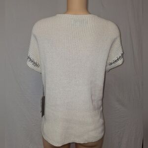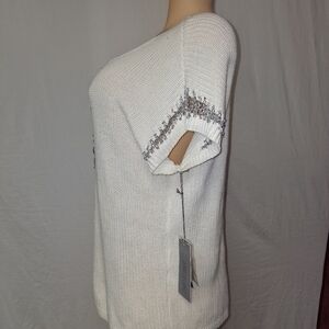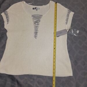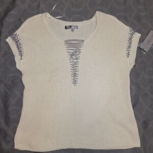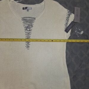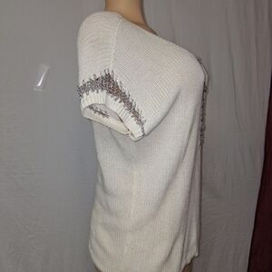Jennifer Lopez Cream White Knit Blouse with Silver Chain Accents Size XL