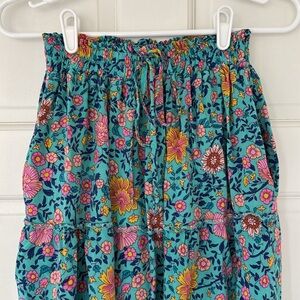 MEROKEETY skirt size S blue pink yellow long tiered cottagecore floral