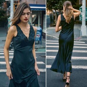 Hunter Bell Lulu dress, embroidered satin gown, black bias cut dress, sleeveless evening gown, formal maxi dress, wedding guest dress, minimalist evening dress, designer satin gown, size 0 dress