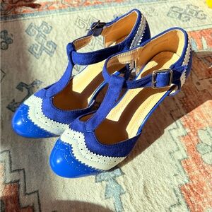 Chase + Chloe Royal Blue and White T-Strap Heels size 6