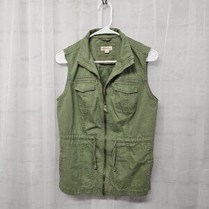 Merona Vest Olive Green Utility Boho Zip Hiking Military Punk S