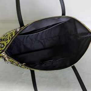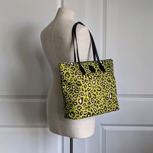 Furla Calipso Tote XL Nylon Leather Top Zip Toni Avocado Green Animal Print NWOT