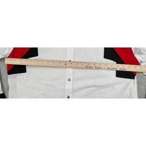 Authentic Vintage Roughrider by Circle T men’s Western snap shirt in a standout white, red, and black color-block design. Made in the USA and constructed from durable 100% cotton. Features pearlized snaps, contrast cuffs, and classic rodeo styling. Clean, crisp, and perfect for collectors, Western wear fans, or modern cowboy outfits.