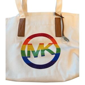 Michael Michael Kors PRIDE Large Embellished Logo Canvas Tote and Matching Pouch