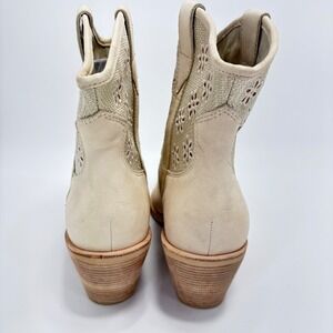 Dolce Vita Size 10 Cream Leather Floral Cutout Western Cowboy Boots Nashe Womens