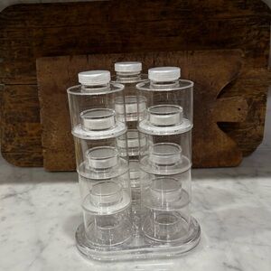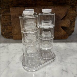 12 self-stacking acrylic spice bottles on easy-access revolving base. NWOT