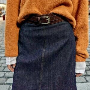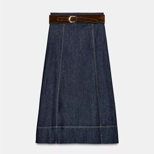 Zara Z1975 Belted Wrap Denim Midi Skirt