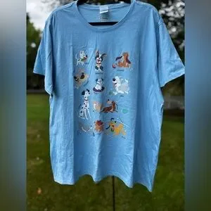 Embrace your love for Disney with this charming blue short sleeve tee. Perfect for casual outings, this top features most of the amazing delightful Disney dogs characters, adding a playful touch to your wardrobe.