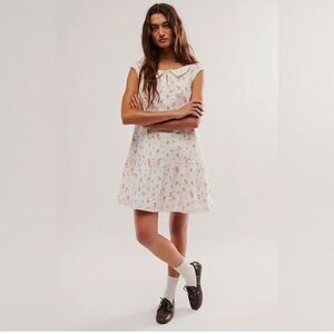 Effortlessly easy and forever-femme, this mini is featured in a soft cotton fabrication and shapeless silhouette with drop-waist detailing and a collared-neckline.