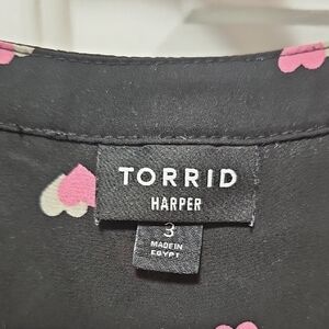 Torrid Harper stylish black top adorned with pink heart accents. Dress up for work or dress down for casual wear.