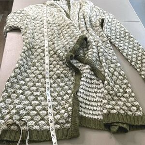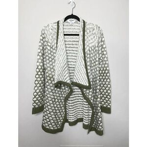Time And Tru Flyaway Cardigan Sweater Open Front Chunky Knit Olive Green…