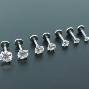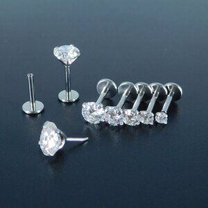 Clear Moissanite Stud Earring: Stainless Steel Push Pin Nose Cartilage Ring