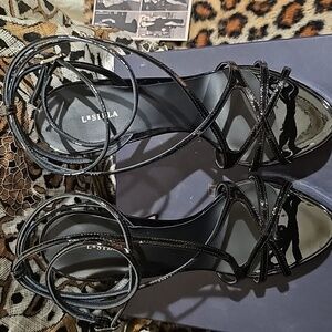 Step out in style with these elegant black strappy heels. Perfect for any occasion, these shoes offer both comfort and sophistication.