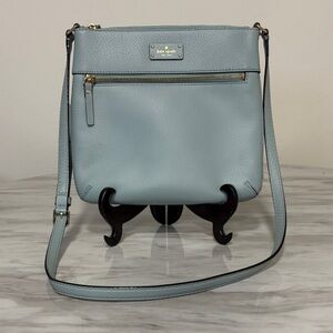 kate spade crossbody, light blue leather purse, kate spade handbag, designer crossbody bag, minimalist purse, everyday crossbody, pastel blue bag, classic kate spade, womens handbag, shoulder bag
