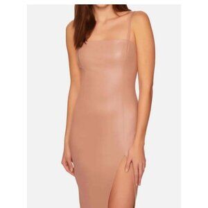 NWT Susana Monaco faux vegan leather sheath high slit beige tan broiche small