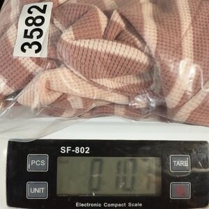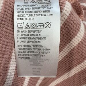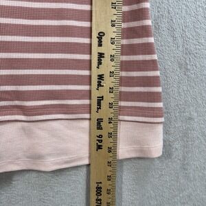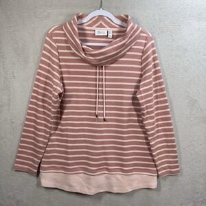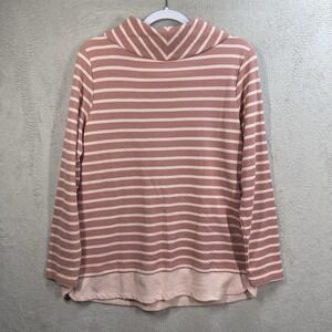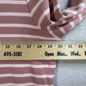 This item appears to be new without tags. Waffle knit material with a drawstring and cowl neck. Pink stripe design.