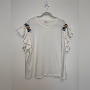 ZAYAN THE LABEL White Rainbow Beaded festival coachella tee top embroidered